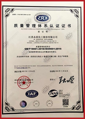 江蘇永星化工股份有限公司成立于2010年,位于江蘇省宿遷市宿豫區生態化工科技產業園揚子路6號,注冊資本3215.463萬元,占地105畝,分為南北兩個廠區。
